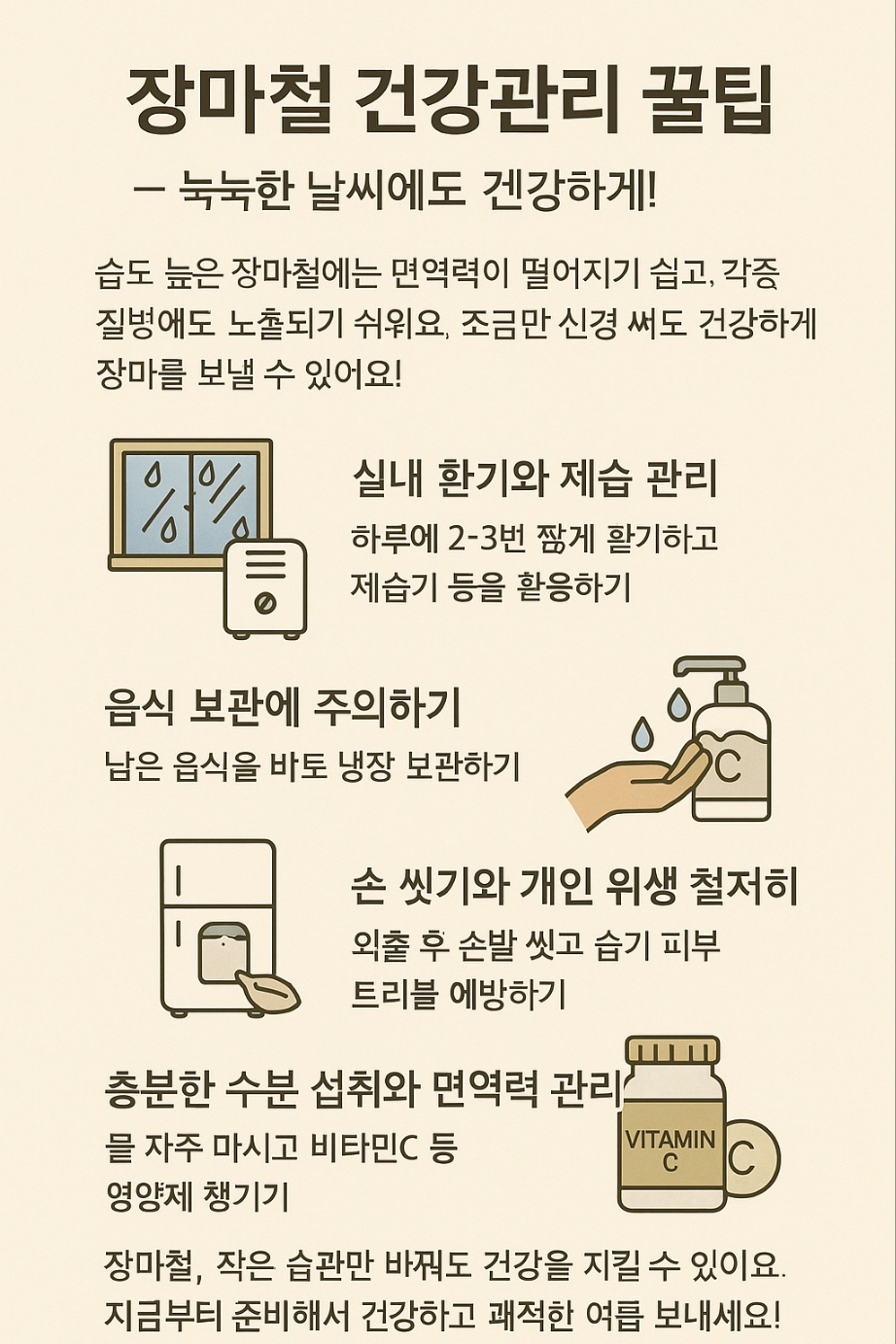 장마철, 작은 습관만 바꿔도 건강을 지킬 수 있어요.