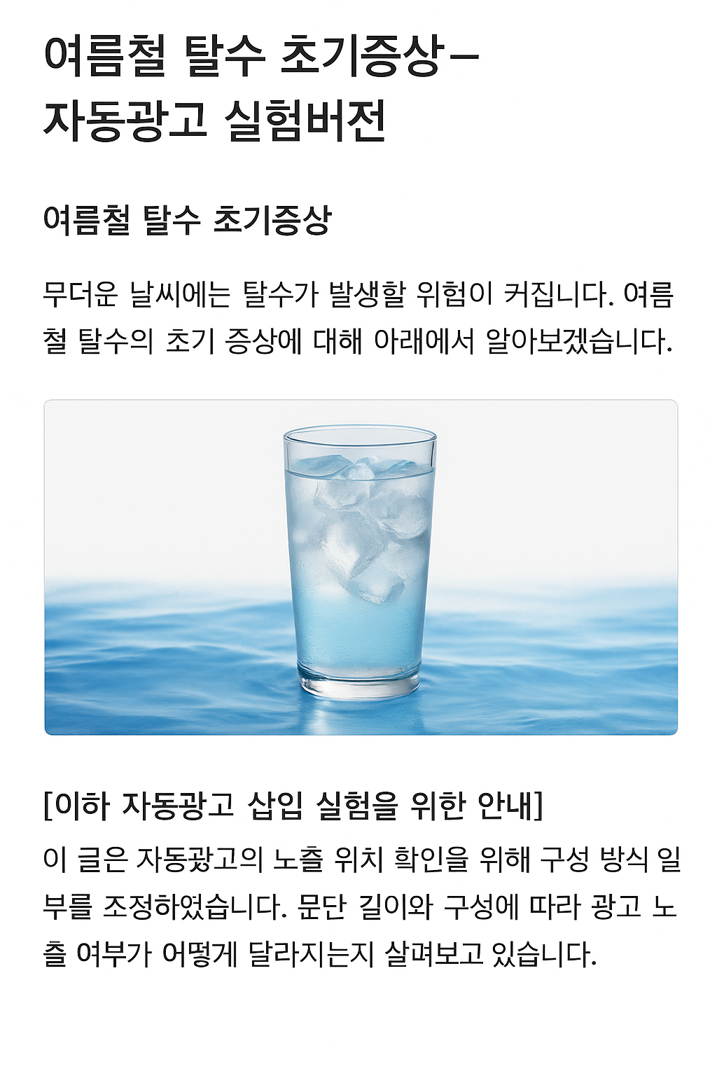 여름철, 갈증을 느끼기 전에 미리 물을 충분히 마셔주세요. 탈수는 예방이 최선입니다!