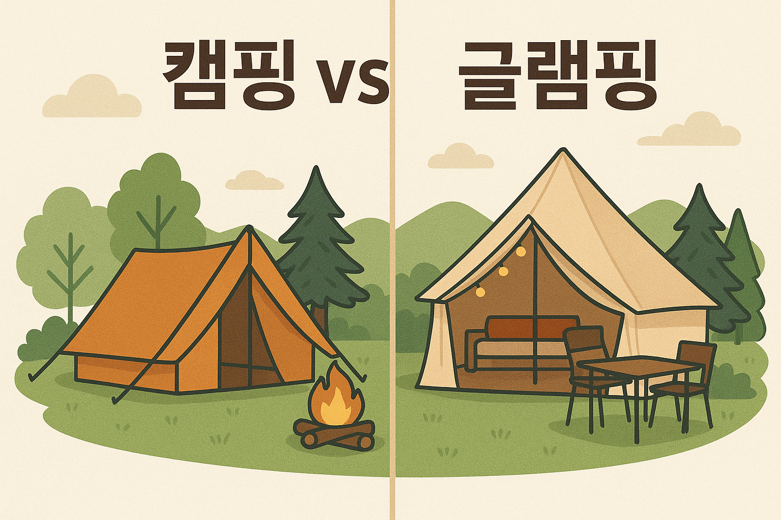 캠핑 vs 글램핑 비교